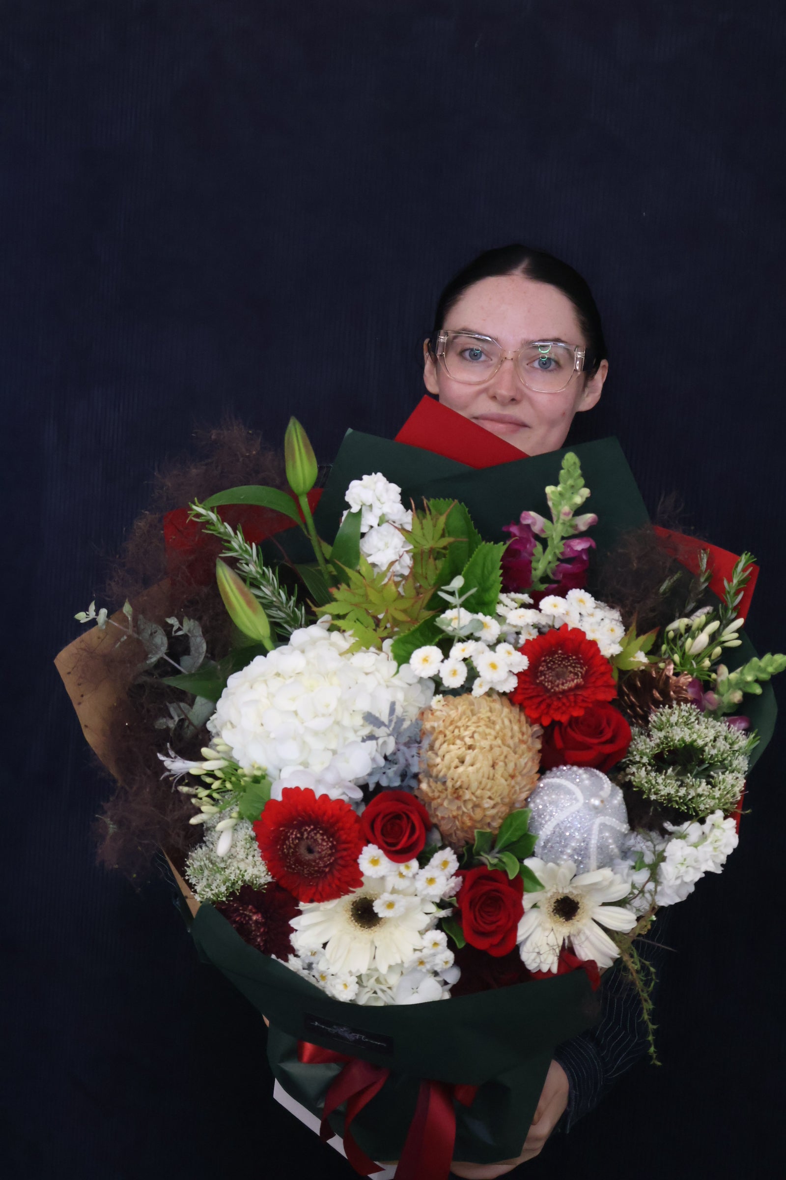 Embrace the festive season with our Feelin' Pine Florist Choice Bouquet, a sophisticated arrangement celebrating classic Christmas elegance. This expertly curated design features crisp white blooms, lush green foliage, and rich red accents, complemented by natural pinecones and decorative baubles for authentic seasonal charm. Elevate your presentation by selecting from our premium hatbox, portable vase, or glass vessel options—each transforms this timeless arrangement into a truly luxurious gift.