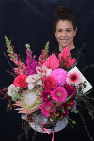Hat Box | Tickle me Pink, Luxe It is a gorgeous artistically assembled bunch of flowers. Thank you. I will come around and collect it during the lunch break today.