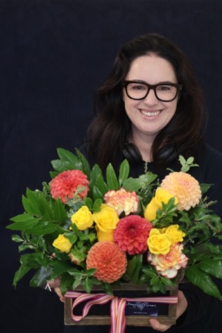 Brighten someone’s day with Stay Golden, a vibrant yellow and orange flower arrangement designed to deliver instant joy. Featuring fresh seasonal blooms like roses and dahlias, this cheerful flower box is perfect for birthdays, get well gifts, or same-day flower delivery.