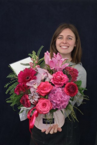 Hat Box | Tickle me Pink, Luxe It is a gorgeous artistically assembled bunch of flowers. Thank you. I will come around and collect it during the lunch break today.
