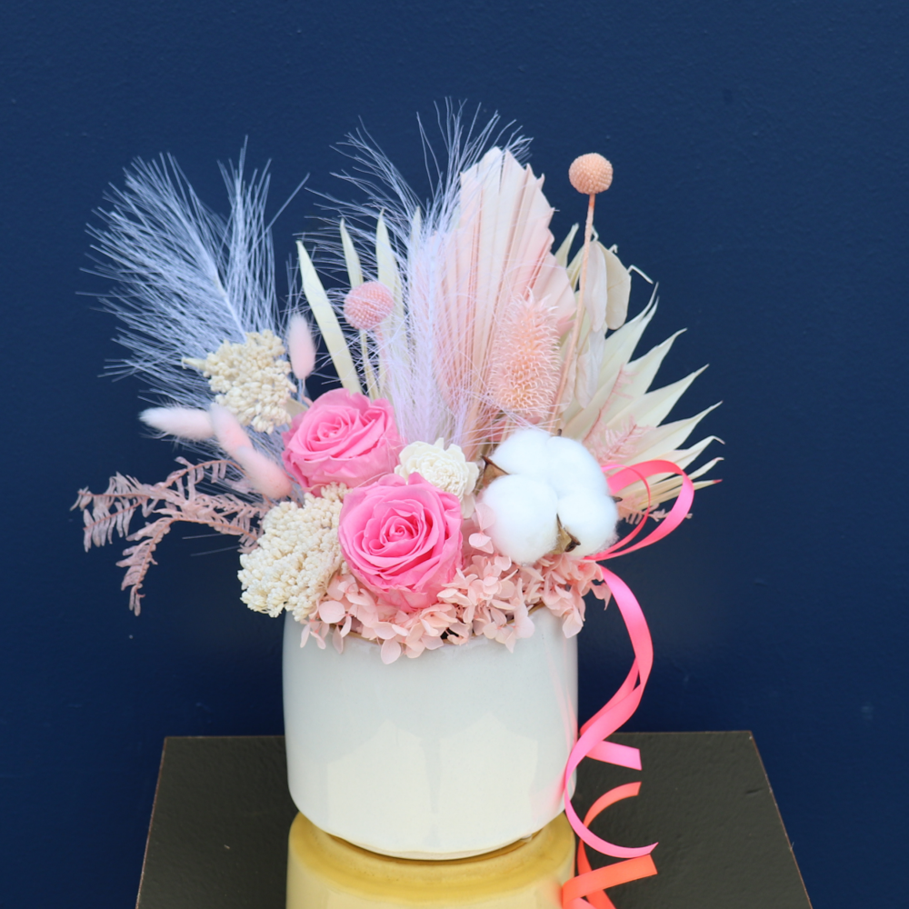 *All our preserved's are one off arrangements, styled by our talented florists. Please note that Ceramics and preserved flower types WILL vary due to availability but the color palate and style will remain similar.