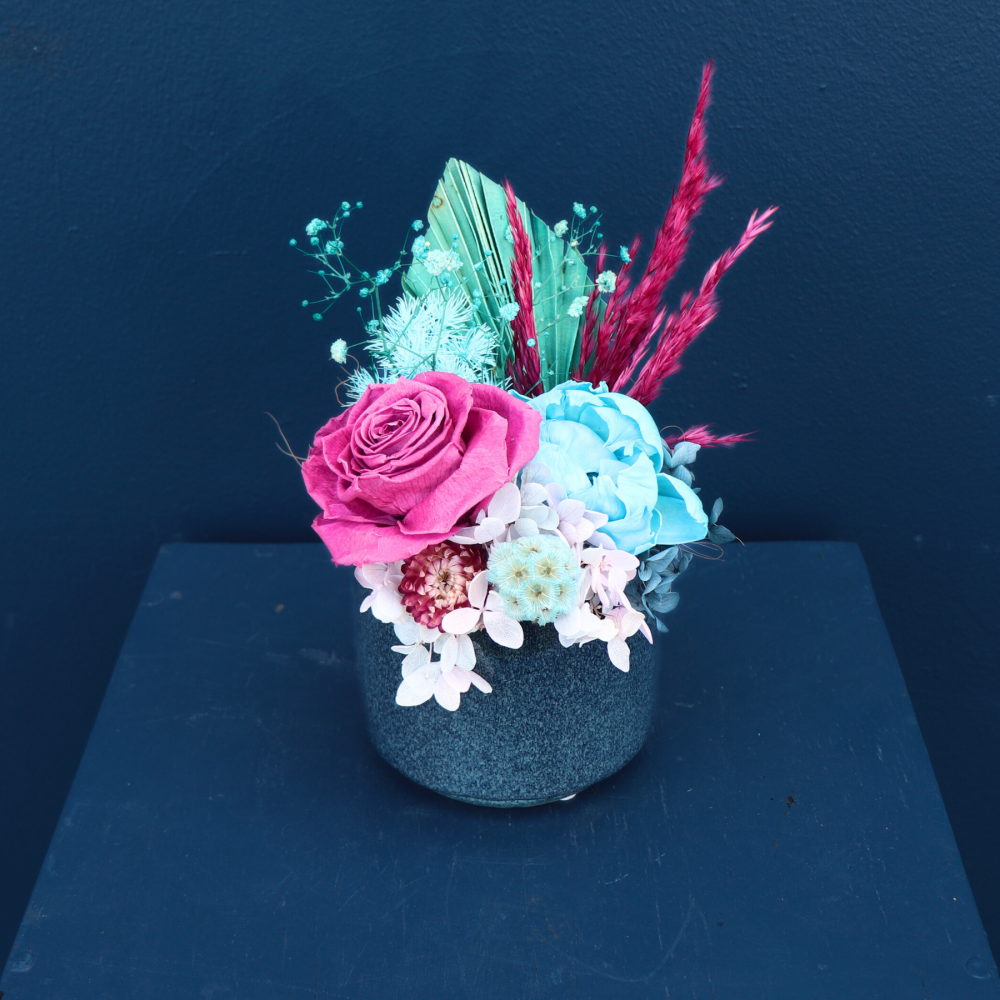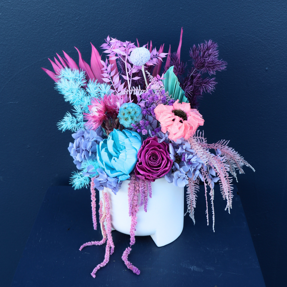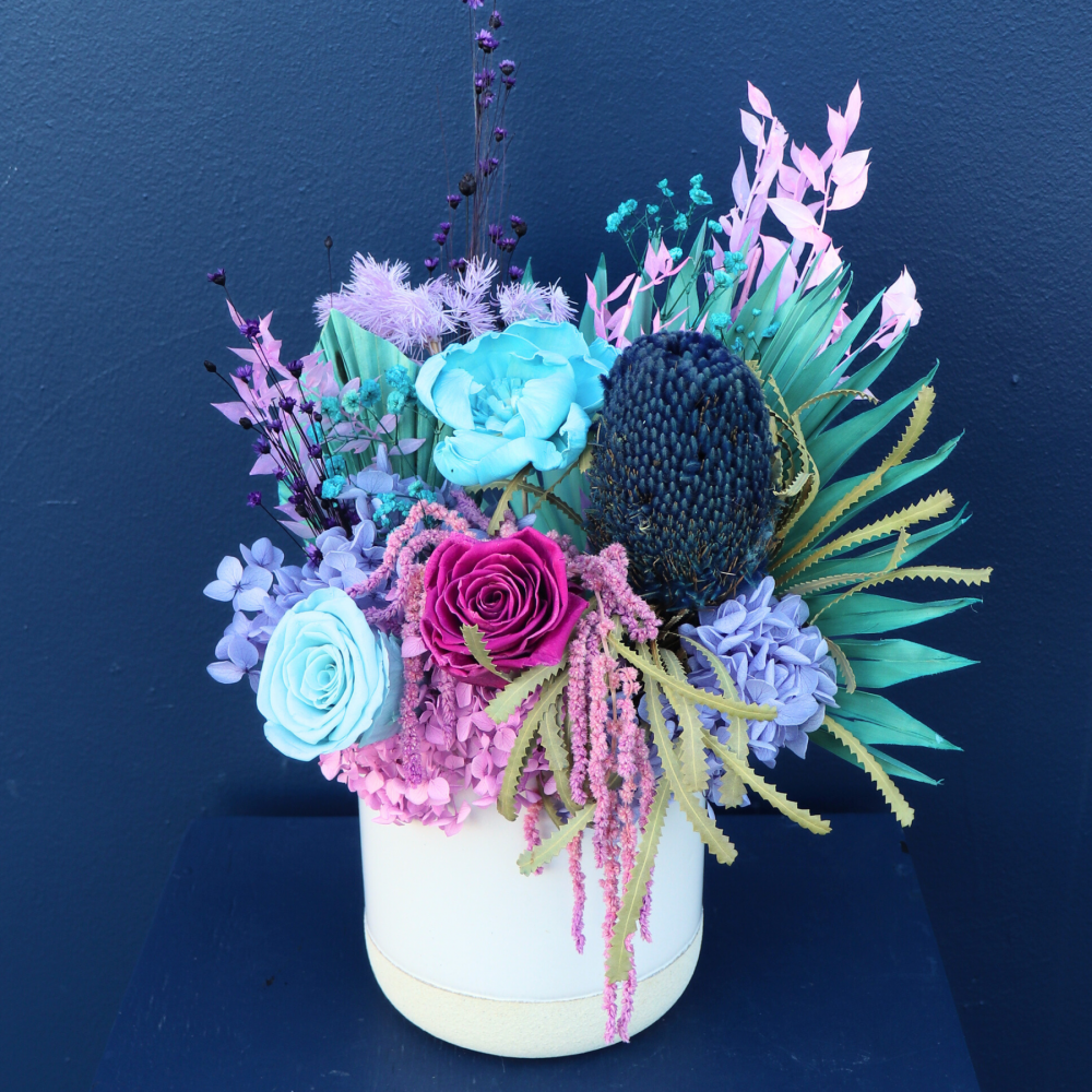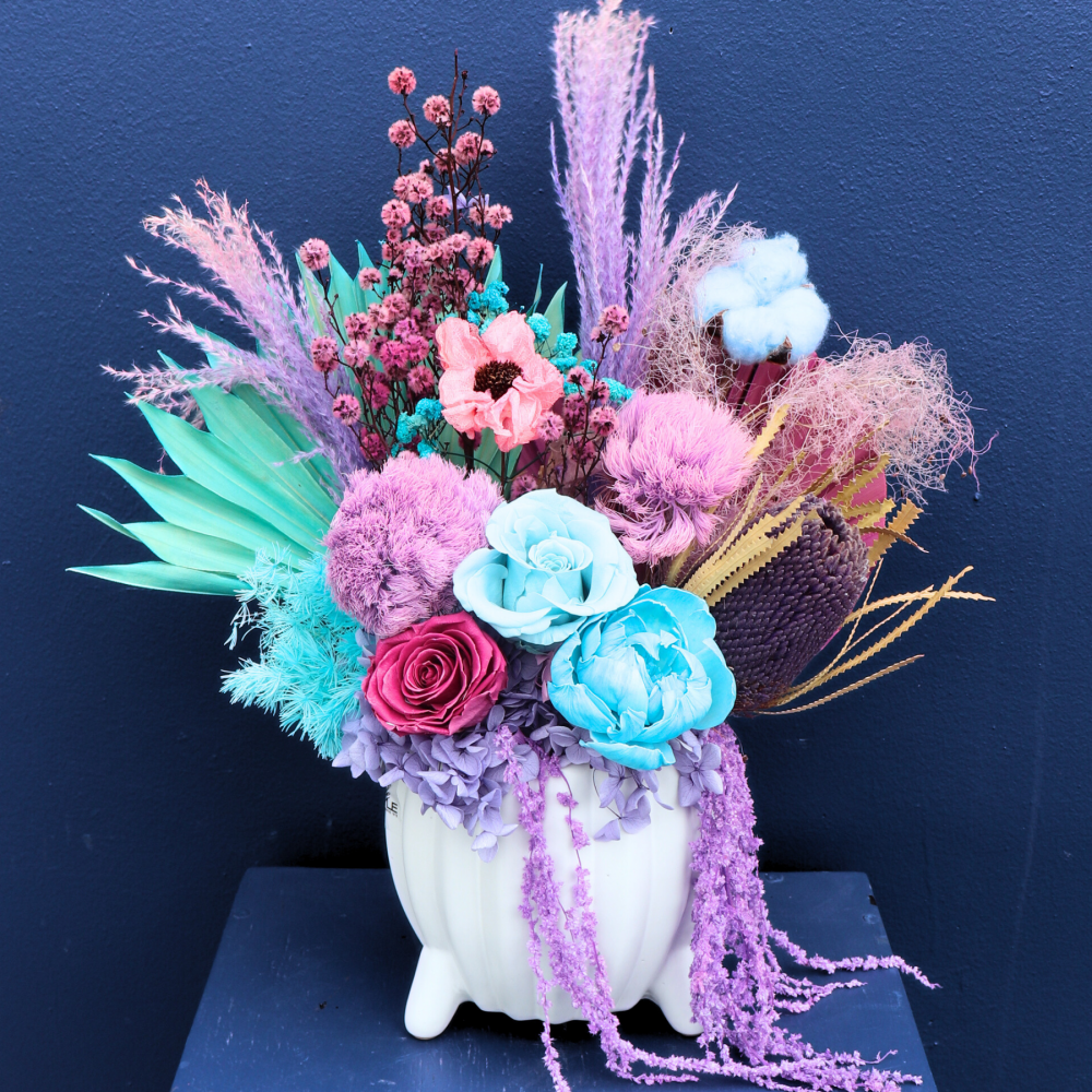 *All our preserved's are one off arrangements, styled by our talented florists. Please note that Ceramics and preserved flower types WILL vary due to availability but the color palate and style will remain similar.