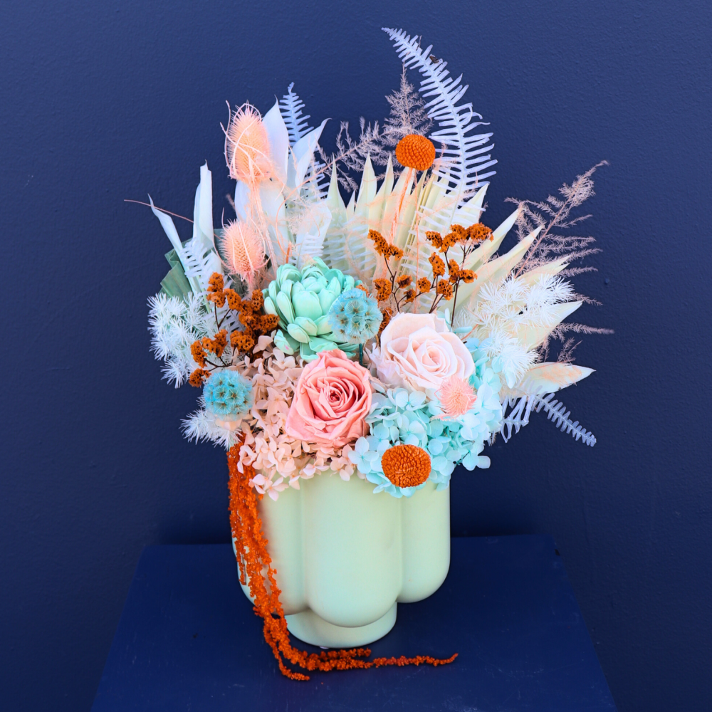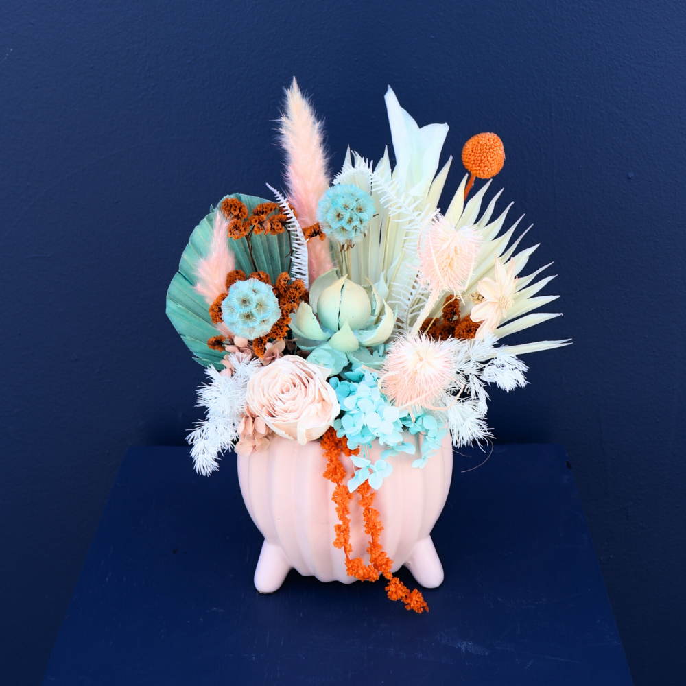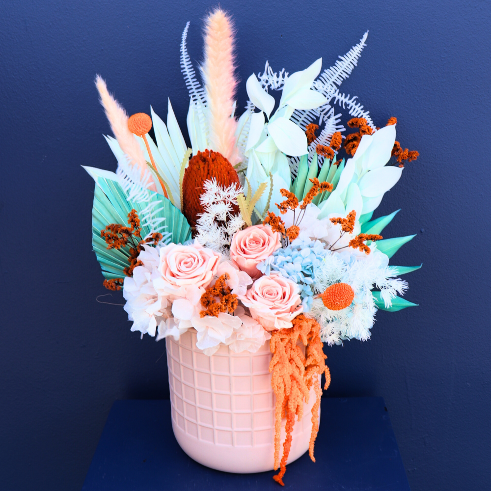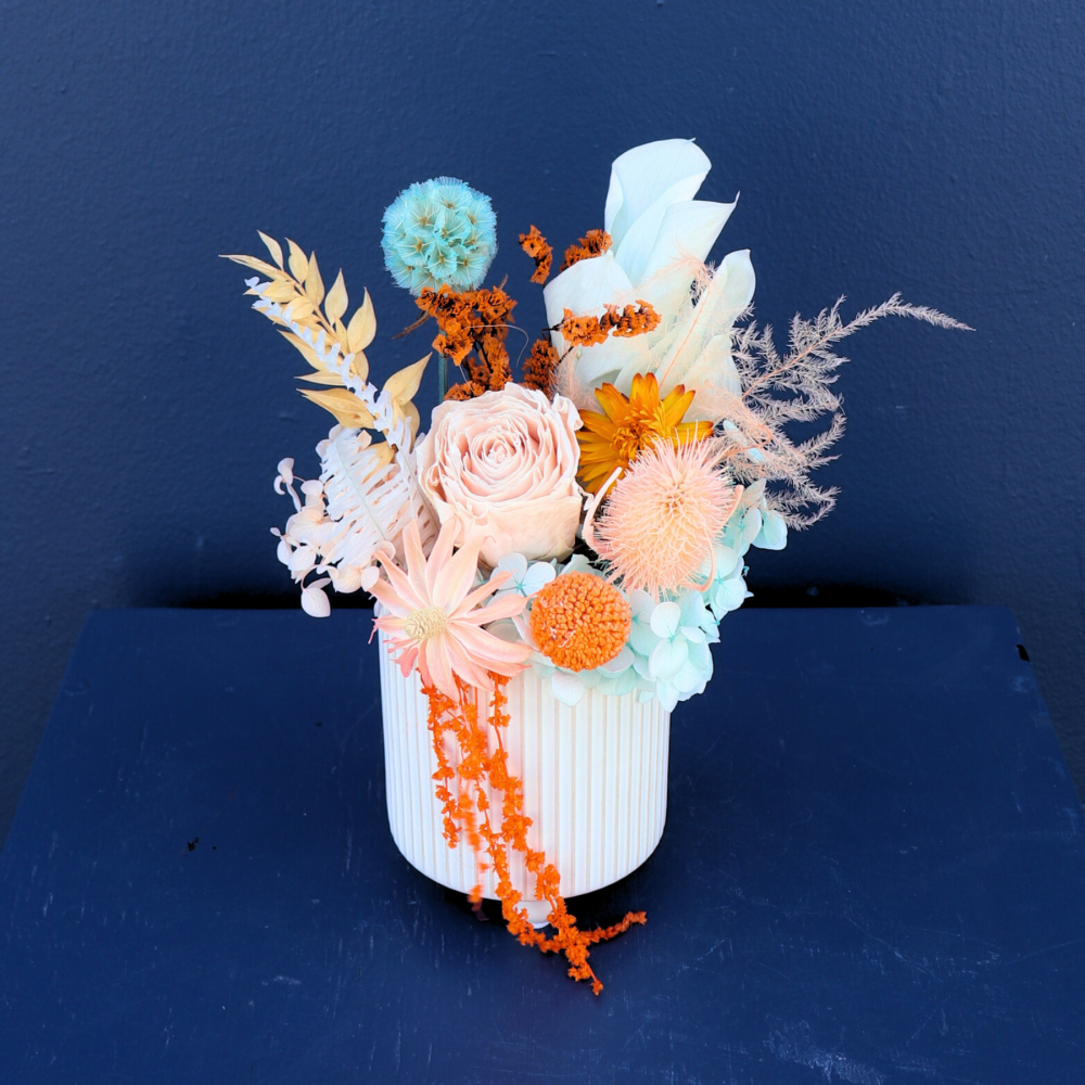 *All our preserved's are one off arrangements, styled by our talented florists. Please note that Ceramics and preserved flower types WILL vary due to availability but the color palate and style will remain similar.
