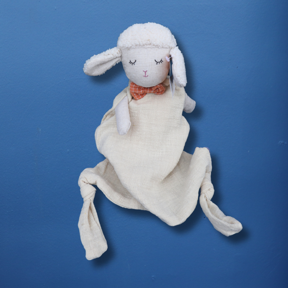 A cuddly classic with a twist of timeless charm—this Comforter is designed to soothe, snuggle, and stay by your baby’s side from day one. With a plush lamb head, soft floppy arms, and a blanket-style body, Made from luxurious micro-plush fabric that feels silky smooth against delicate skin.