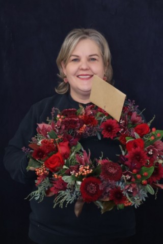 Wreath | Burgundy + Red, LargeBeautiful wreath. I ordered on line and was delighted with the customer service I received. Not only did Amys Flowers call the recipient to agree a best time for delivery but they also sent me a photograph of the item I’d ordered and a confirmation of delivery. I can thoroughly recommend this company especially if like me you are placing an order from overseas. Thank you to all at Amy’s Flowers. I am hugely impressed by your personalised service.