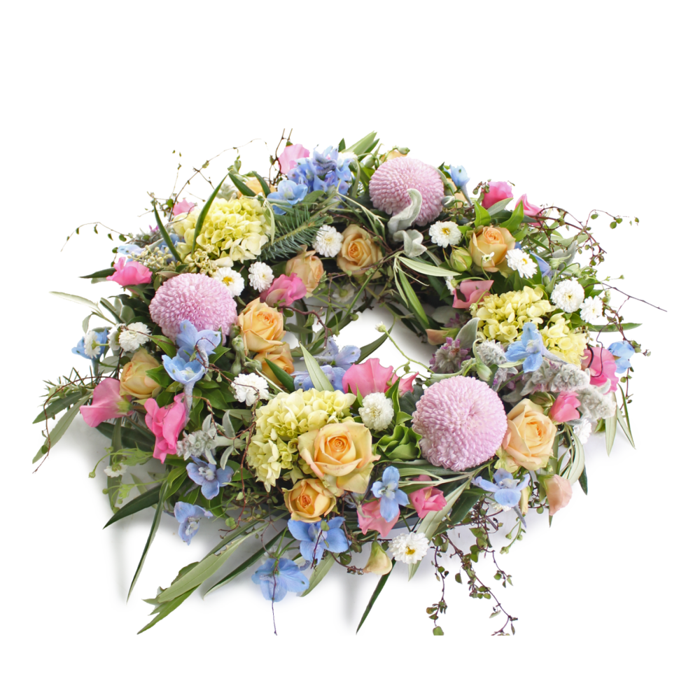 Gorgeous pastel shades of pink, peach, lemon, white, and blue (if seasonally available). Medium approx 40cmD Fabulous approx 55cmD